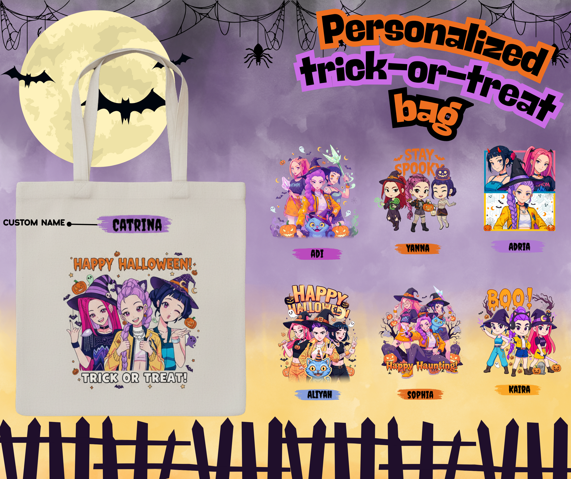 Make Holloween extra special with a custom Trick-or-Treat bag your little one will love! Designed to hold plenty of candy, these durable tote bags are personalized with their name, so there's no mix-up on spooky night. Cute, practical, and reusable year after year -these bags are a must-have for trick-or-treating fun.